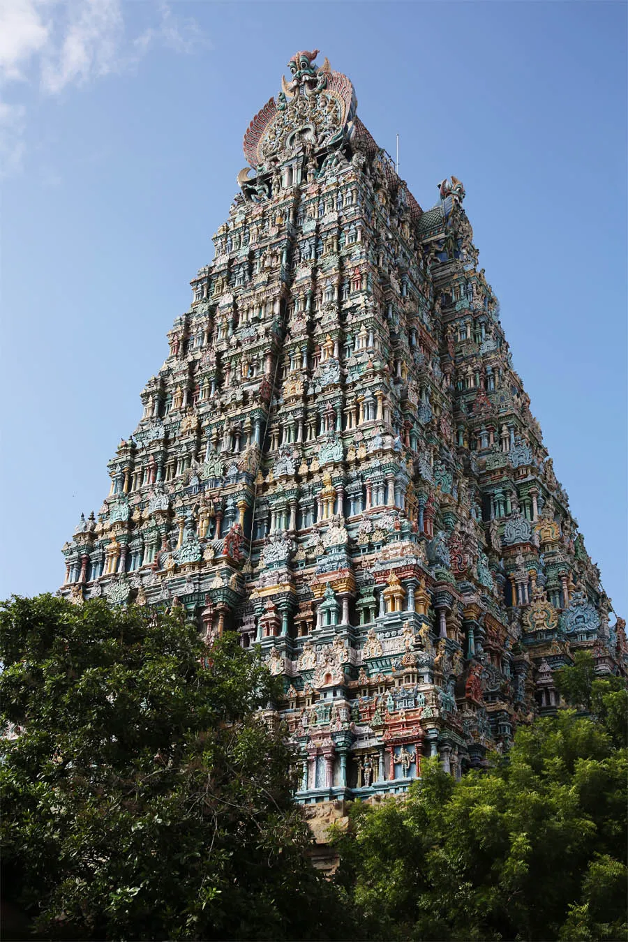 The Temple was built on a rock-cut architecture, which backs to the reign of Pandyas in the 6th century and is full of life-sized sculptures in the mandapas of the Nayaka period from the 16th century. The Aasthaana Mandapa, with several artistically carved pillars, leads one to the large 150 feet high seven-storied raja gopuram at the entrance.